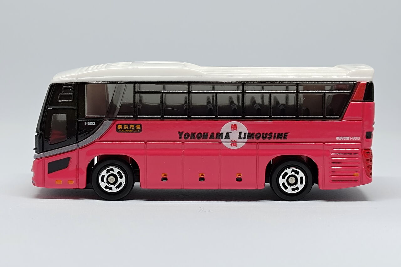 ボディサイドには、YOKOHAMA LIMOUSINEロゴの他、車番や各種灯火類が印刷によって再現されています。